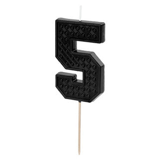 Personalise construction themed cakes with this black brick patterned number candle! Pair with other building block themed partyware and bakeware for a stand-out display! This candle measures approximately 6cm. Supplied individually.