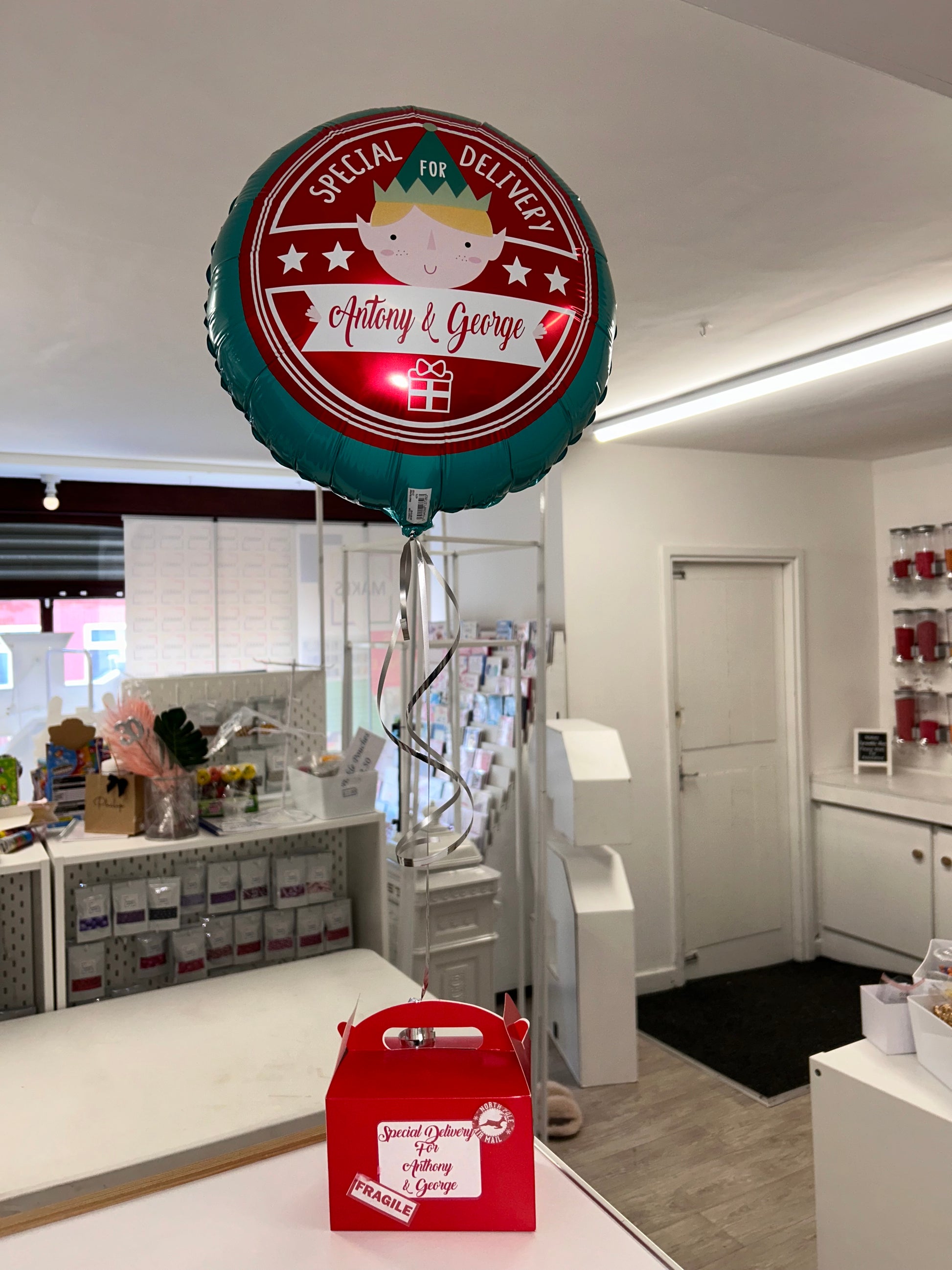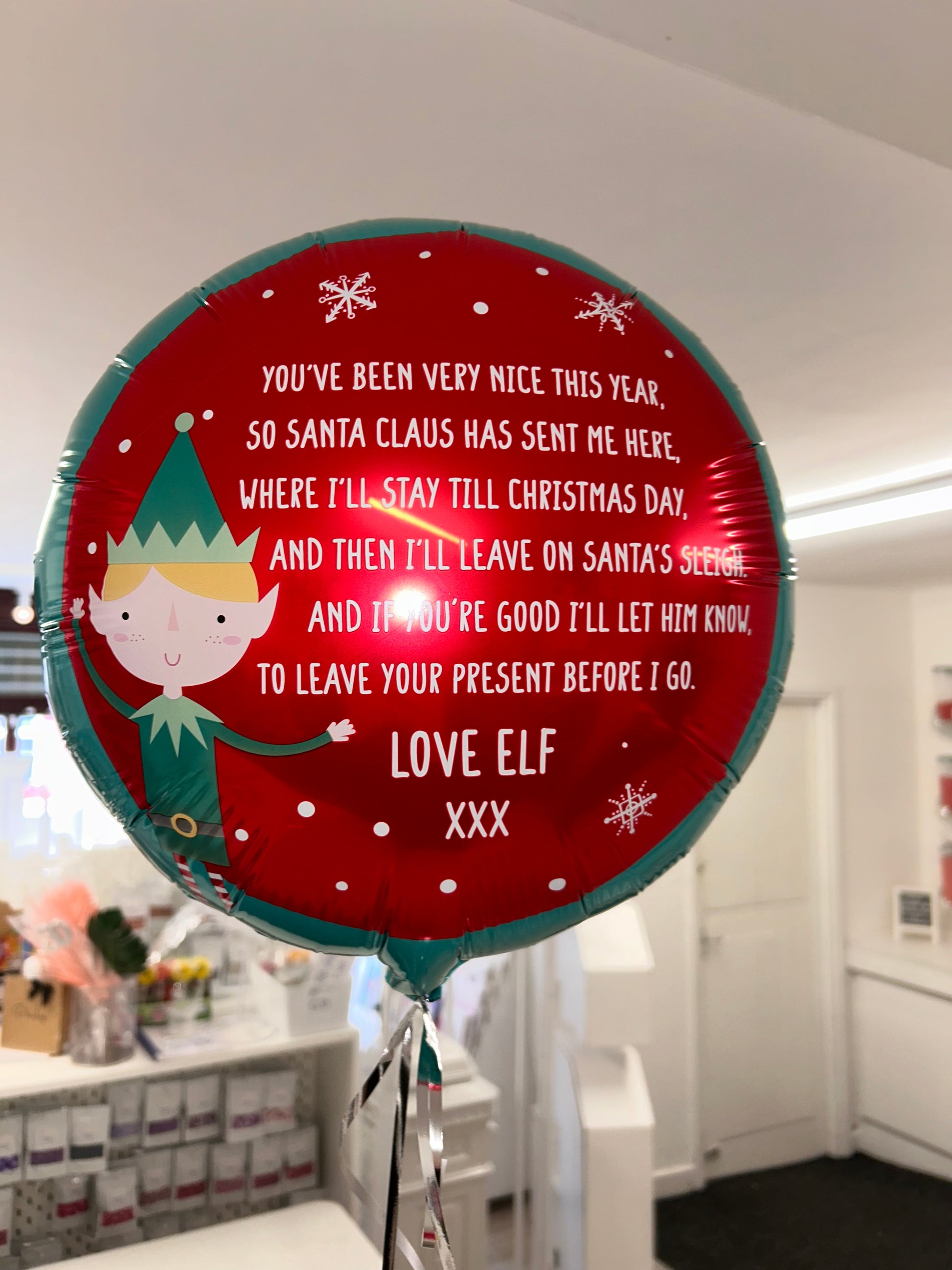 Elf arrival balloon perfect way to bring your elf back to start all their mischief this year. Elf not included you need to put your elf inside the box. The box contains fake snow just like your elf has been given some comfort on his journey from the North Pole.