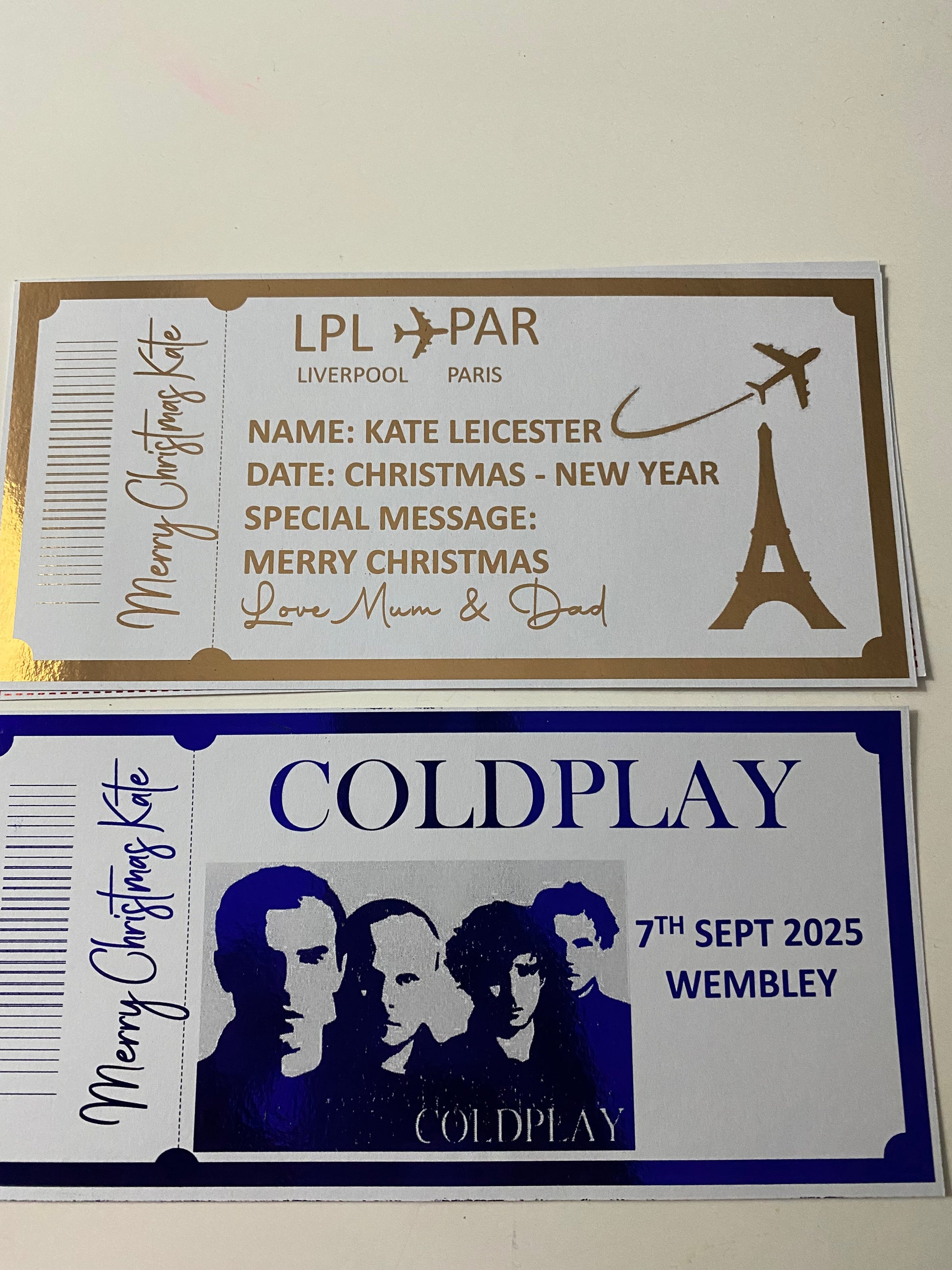 Foiled ticket comes with envelope or boxed the box will arrive flat packed just fold all sides in to construct the box