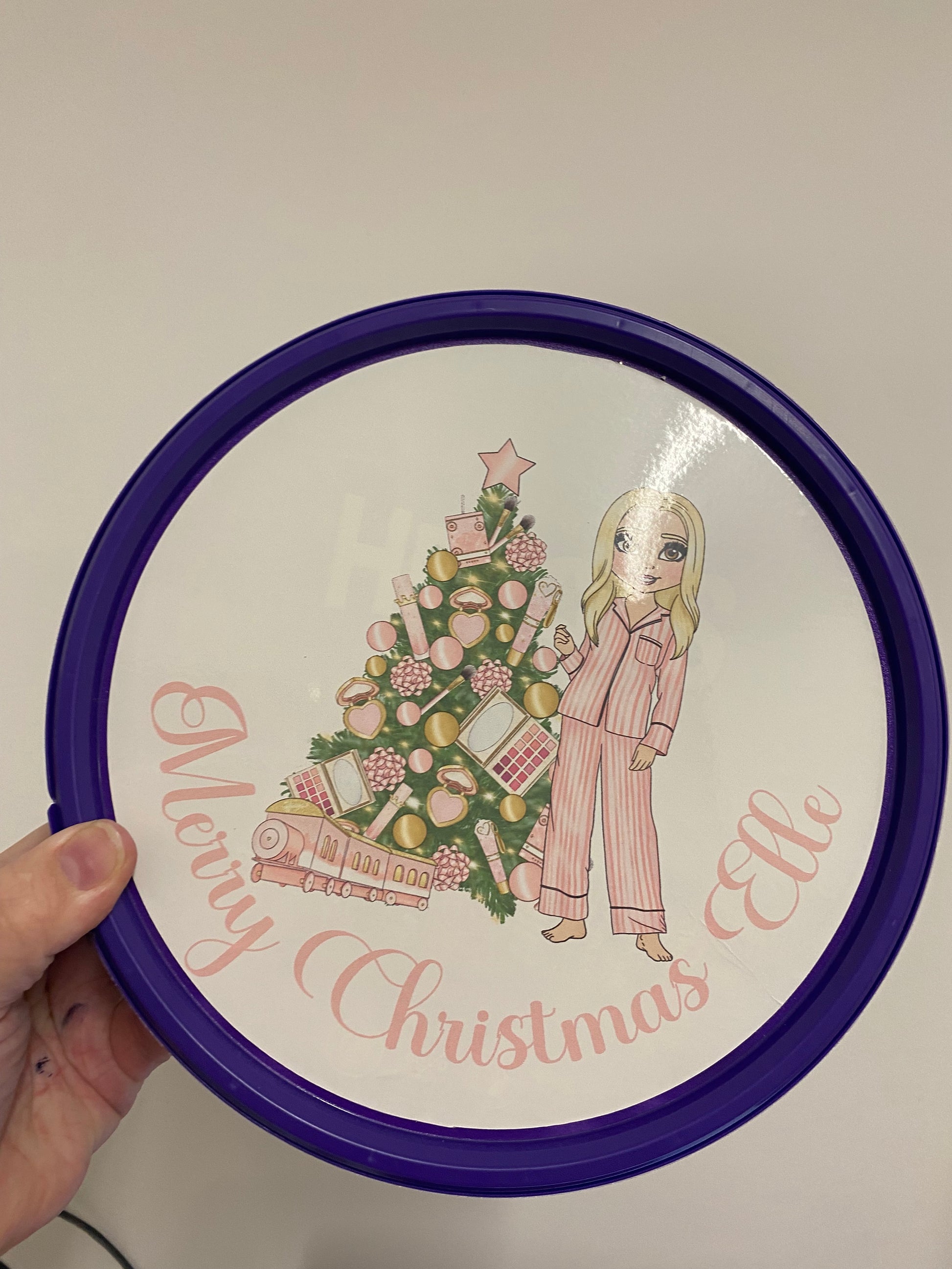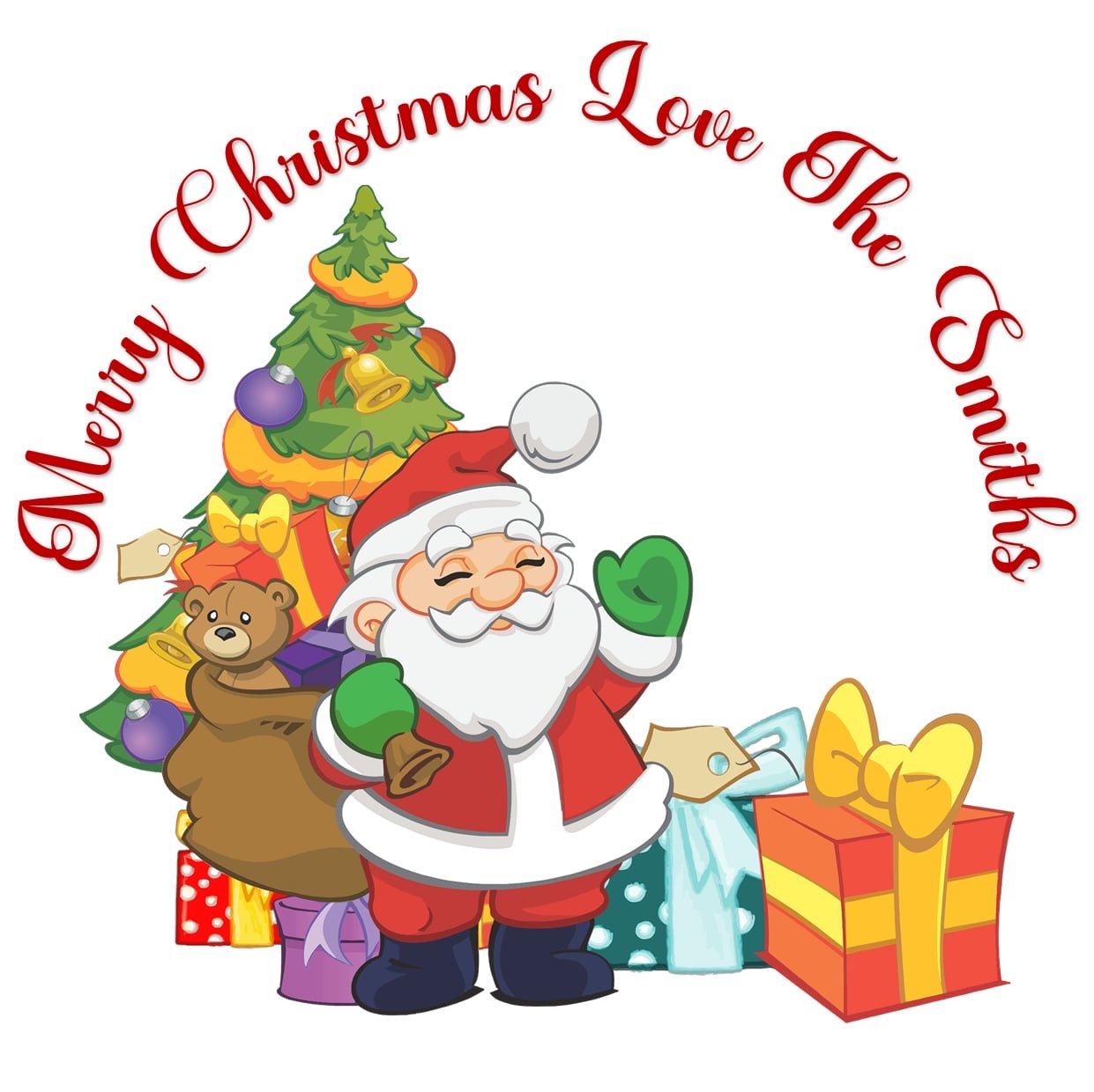 please click view cart and a box will appear then enter name you would like on the sticker if no name is in the notes it will just be sent with Merry Christmas on it