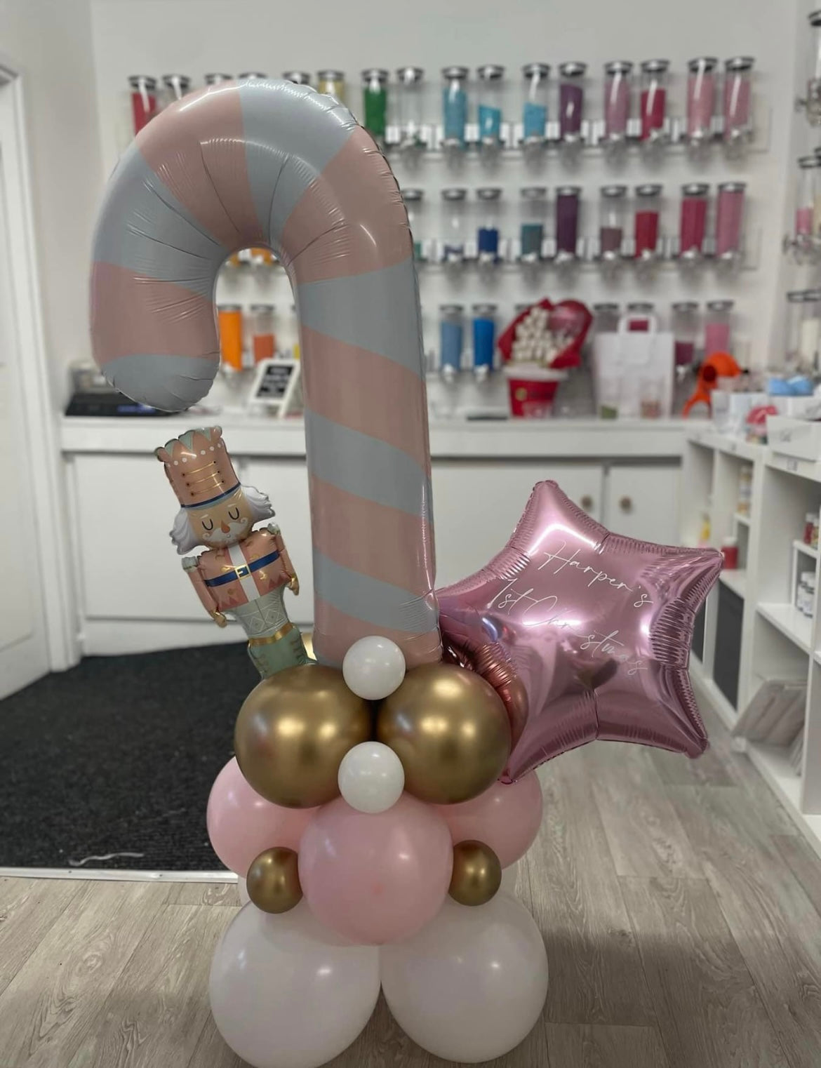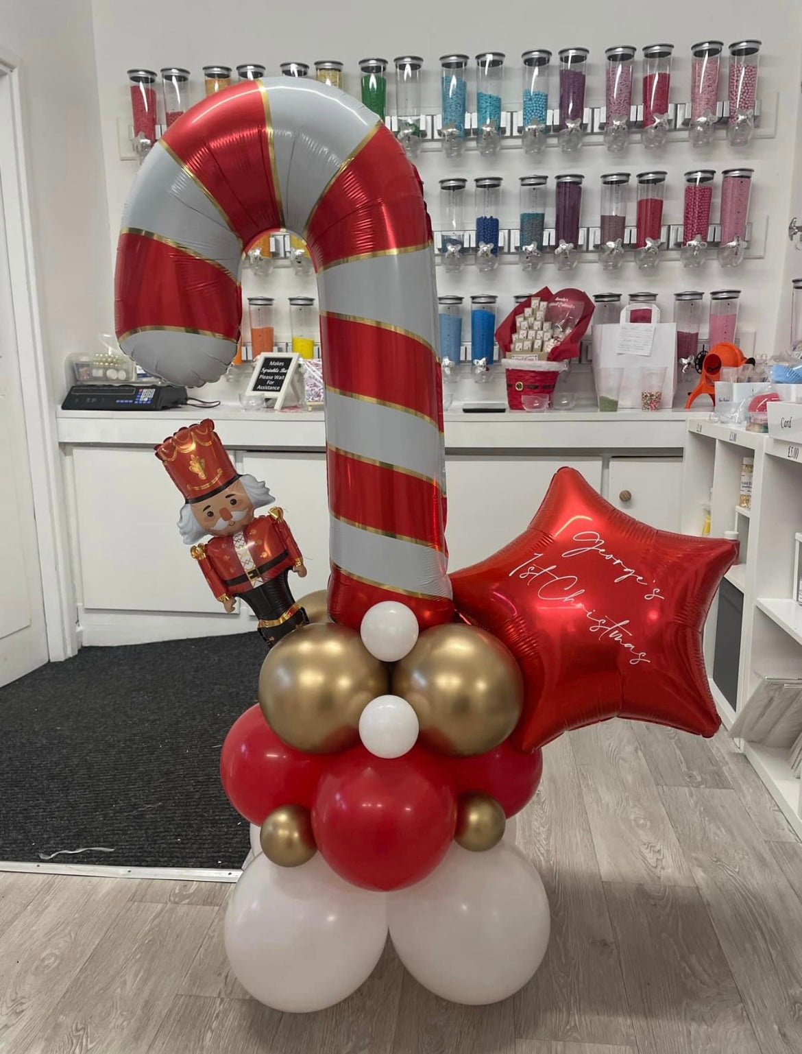 Christmas Balloon Stacks. Each stack is custom-made to feature your chosen name, adding a personal touch to your festive display. These high-quality balloons are sure to impress your guests and make your celebrations stand out. Order yours now and make this Christmas truly special.