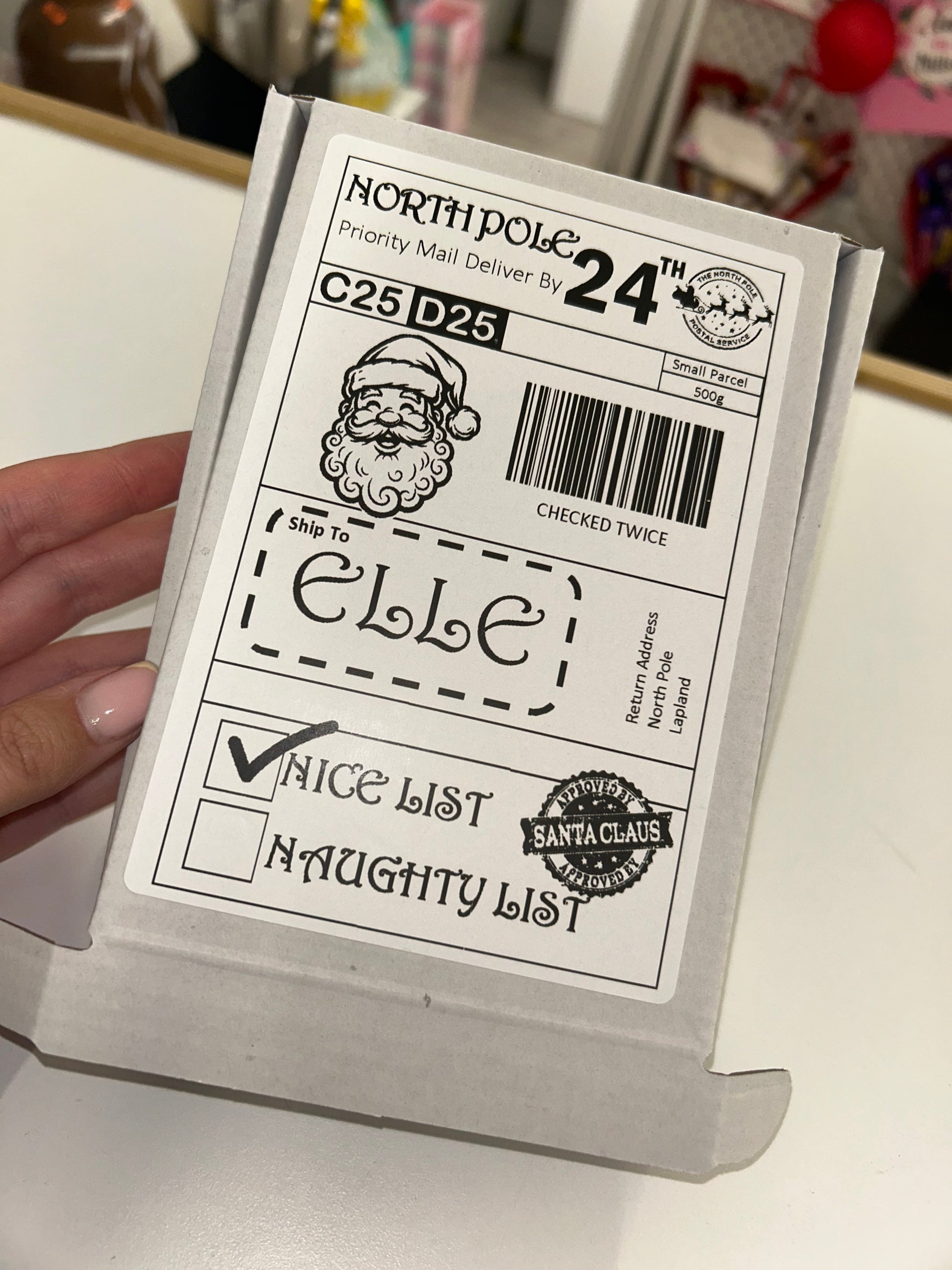 Personalised Christmas Nice List Chocolate Box Postage Label