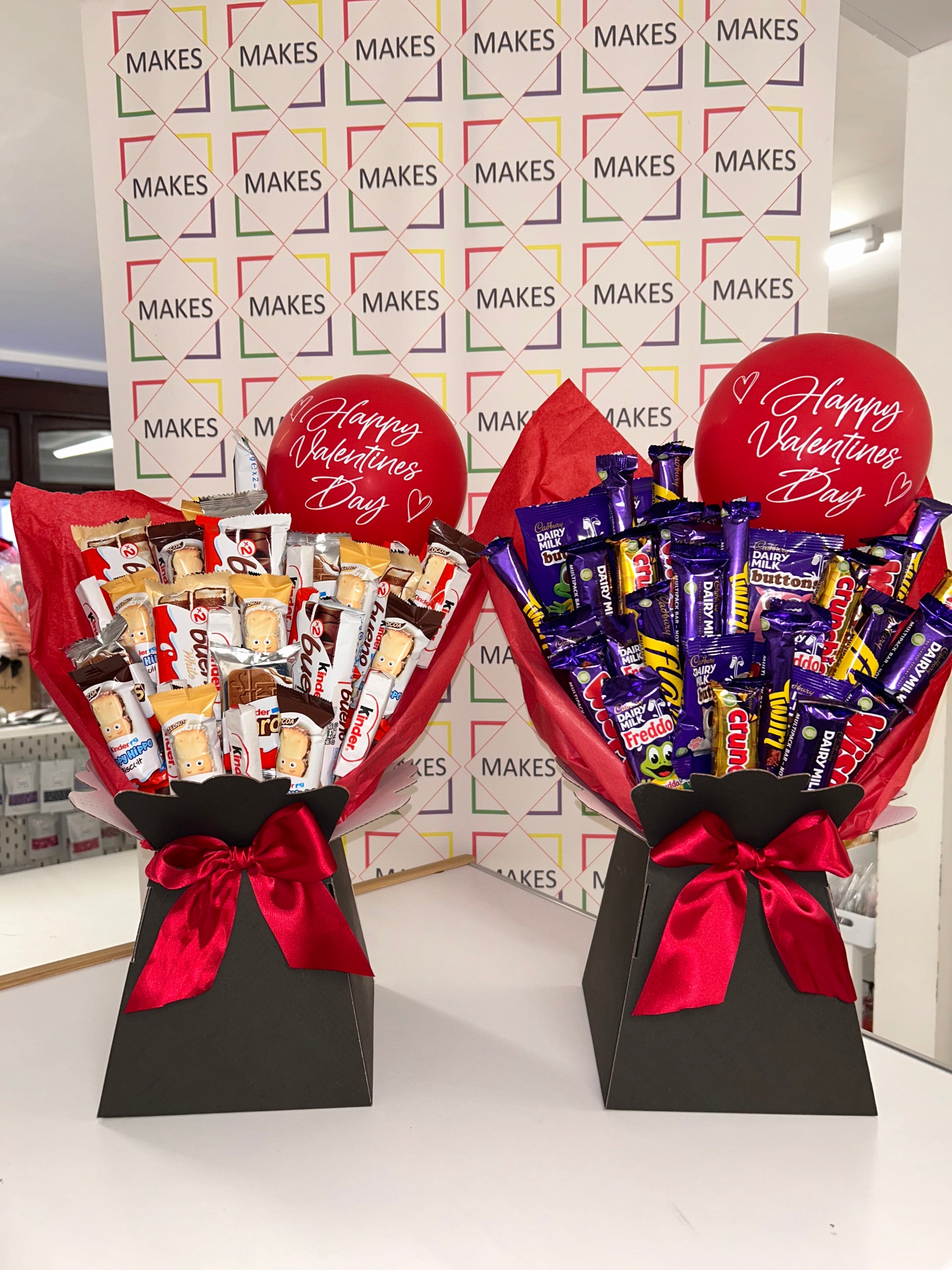 Valentine's sweet bouquets are available in Cadbury's, Kinder and more. Both bouquets include a range of chocolate by that brand you have chosen.